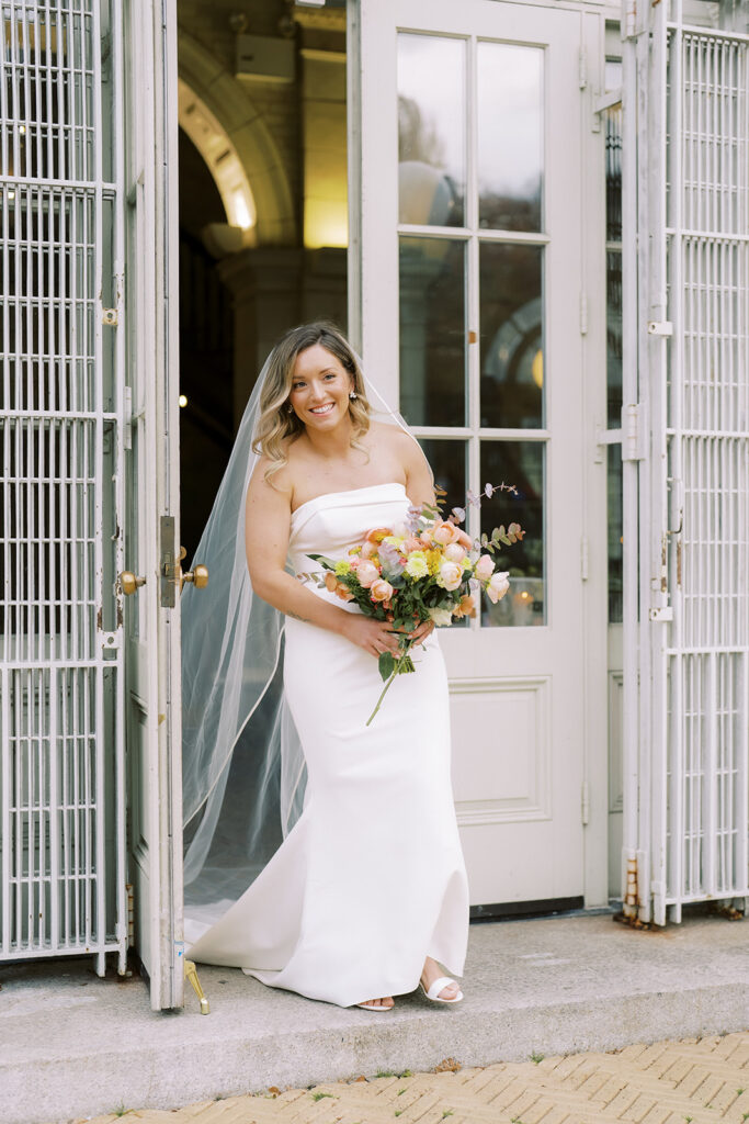 And then the inside of the Boathouse. If you have never been, the interiors already have so much character. Warm tones, that classic historic feel, big windows, and all that texture. Steve and Angela’s vendor team completely understood the assignment. They brought in Douglass of Pattern Parties and Nicolas Cogrel for florals, and they worked actual magic in that space. I am not exaggerating when I say I was drooling photographing reception details. I did not even have much time to do it, because the timeline was moving, and I could have happily stayed in there photographing tables and textures all day.