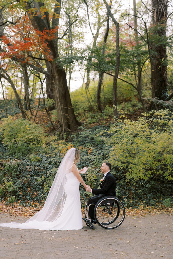 Steve and Angela had one of those Prospect Park Boathouse wedding days that feels like it was made for fall. It was right at the tail end of foliage season, so much so that for a second I thought they might have missed peak color, but they didn’t! The park had one last encore in it, and it absolutely showed out. We had originally planned to keep their first look and portraits close to the venue, maybe even inside if the light was being weird, but the second I arrived I was like… we are NOT wasting this. We headed out into the park and it was instantly worth it. Those warm, glowy trees were everywhere, the kind of background you cannot recreate with anything else.